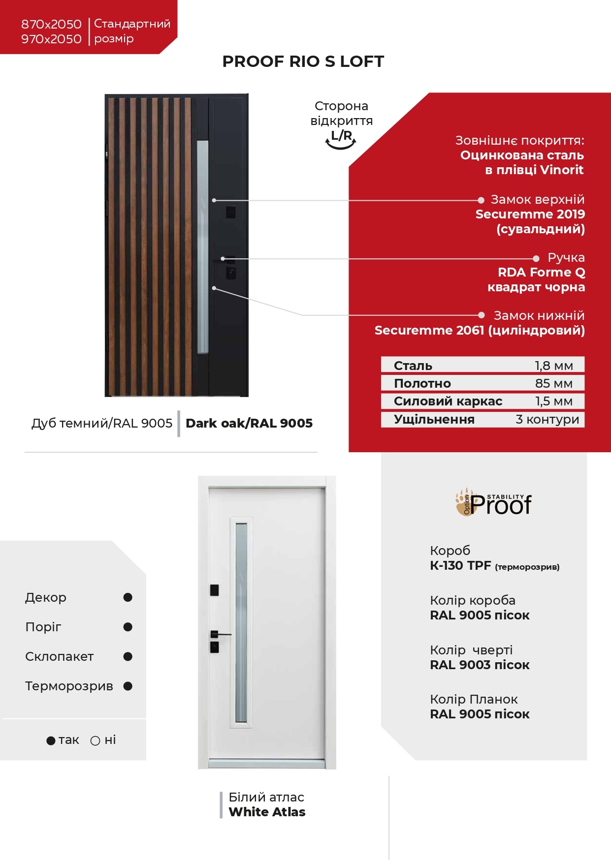 Двері Straj PF.St. Securemme Rio S Loft (870,970х2050) Дуб темний/ Білий атлас
