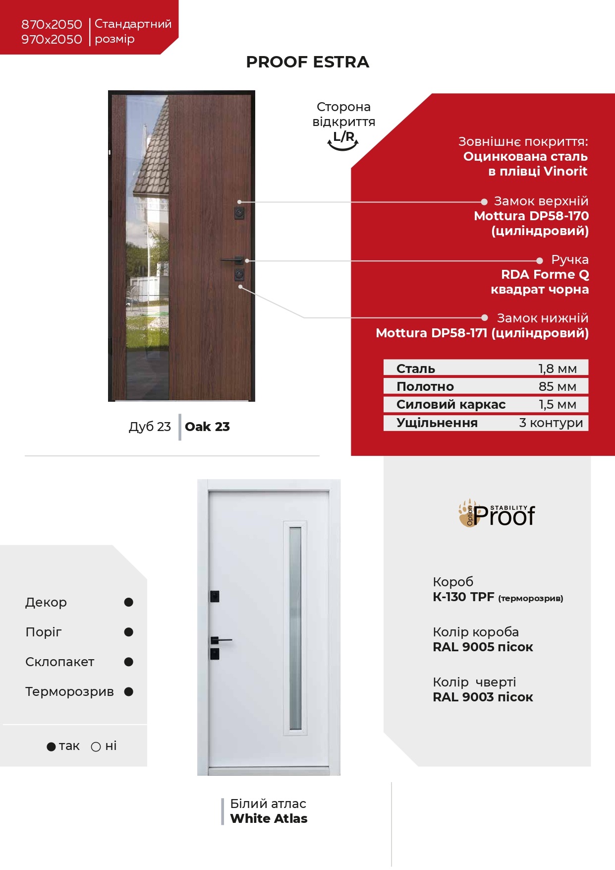 Двері Straj PF.St. Mottura Estra 970х2050 Дуб темний/белый атлас (стеклопакет)