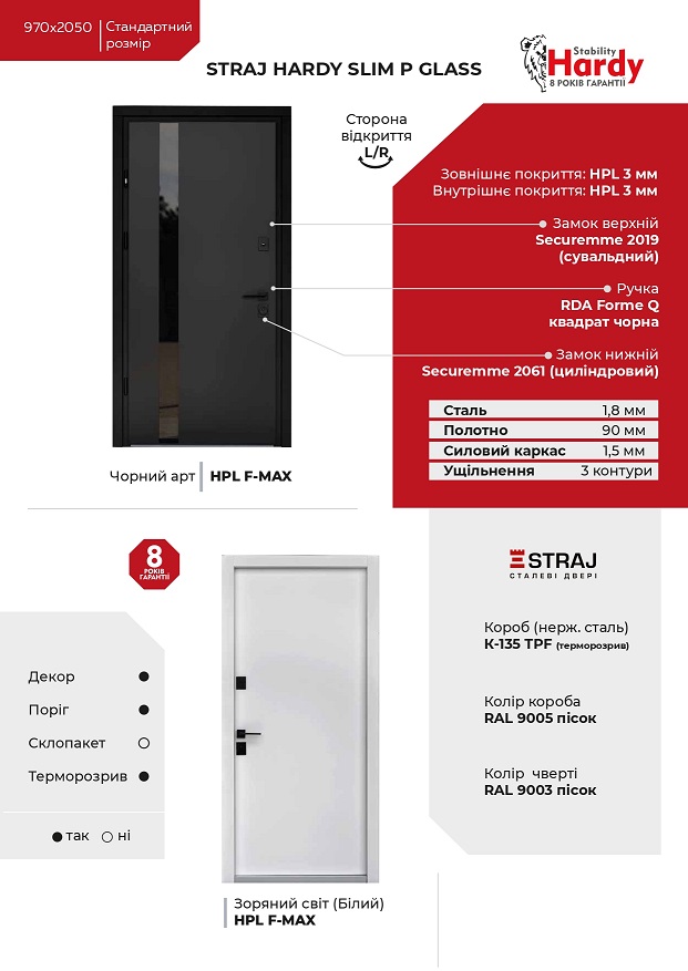 Двері вхідні Hardy St Securemme HPL Slim P Glass Black NT/Starlight 970*2050права