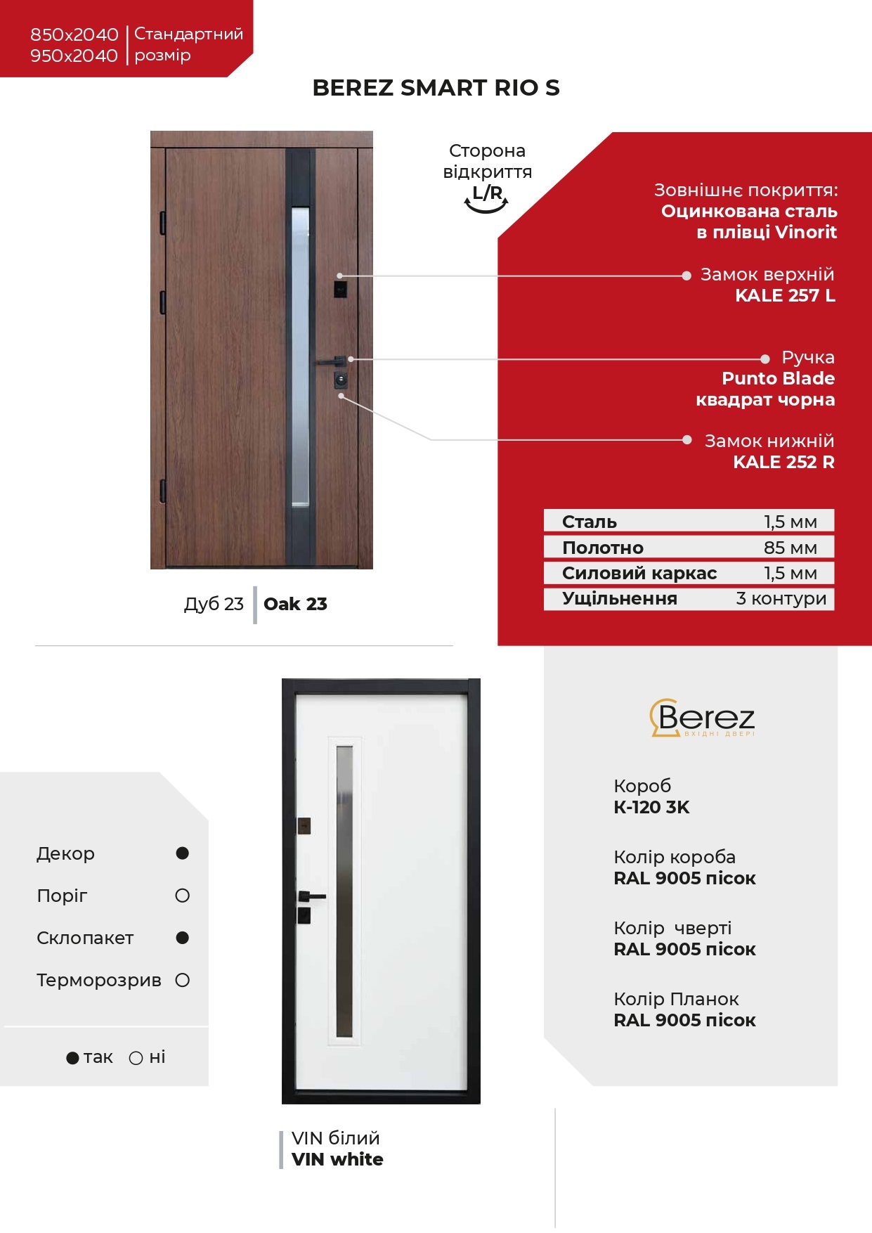 Вхідні двері Берез Смарт Ріо С 870/970*2050) Антрацит/Білий сатин Склопакет